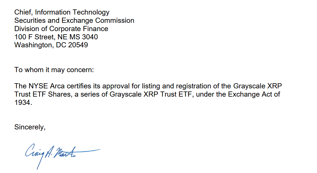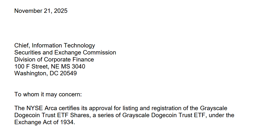 纽约证券交易所Arca平台已核准灰度瑞波信托ETF份额和灰度狗狗币信托ETF份额的上市注册。这项认证是允许两款产品公开上市的最后行政步骤。