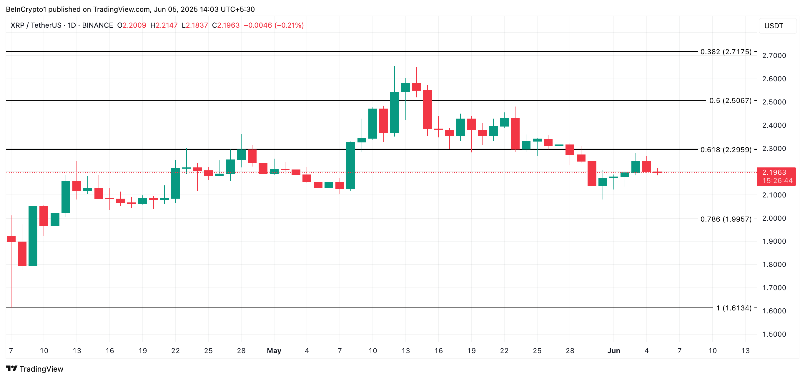 XRP自6月初以来持续反弹,试图收复5月的跌幅。截至发稿时,该代币交易价格为2.19美元。然而这种上涨势头可能面临风险——XRP长期持有者(LTHs)正将本轮反弹视为获利了结的机会。