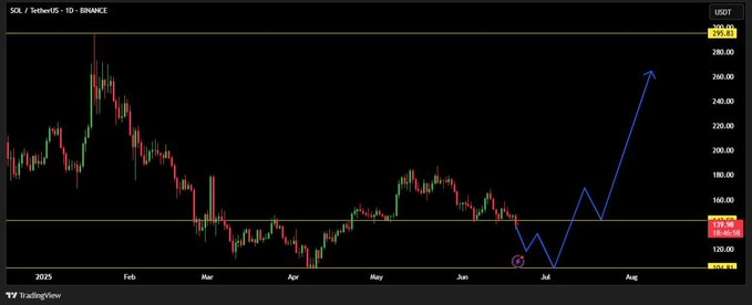 从168美元的下跌使Solana价格进入技术决策区。分析师Batman指出,当前形态与典型的空头陷阱相似。根据其模型预测,SOL可能短暂下探105美元后快速反转,随后或将开启V型反弹,最终目标位约260美元。