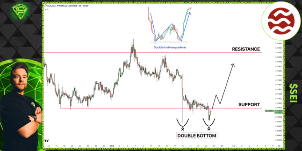 从走势图可见,SEI在长期下跌后已两次测试同一支撑区域。每次价格触及该区间时,都未能进一步下破并迅速反弹至其上。这一现象意义重大,表明买家正在相近的价格水平介入布局。