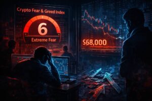 加密货币市场情绪跌入深度恐惧区域随着加密货币恐惧与贪婪指数骤降至6点,市场情绪已跌至三年多以来的最低水平。这一急剧下滑使当前情绪指标重回加密史上最黑暗的章节之一——2022年6月的水平。尽管价格尚未崩塌至前周期低点,但市场信心已明显蒸发。当前主导短期市场决策的并非乐观情绪,而是恐慌心理。历史阴影下的情绪共振加密货币恐惧与贪婪指数上次出现如此低位读数正是在2022年6月。那段时期以系统性失灵与行业连环崩塌为特征:Terra-LUNA生态的崩溃几乎在一夜之间抹去数百亿美元市值;随后Celsius暂停提现,用户资金遭冻结,引发中心化借贷平台恐慌浪潮;当三箭资本崩盘时,危机进一步蔓延,多个交易对手方被2026-02-07