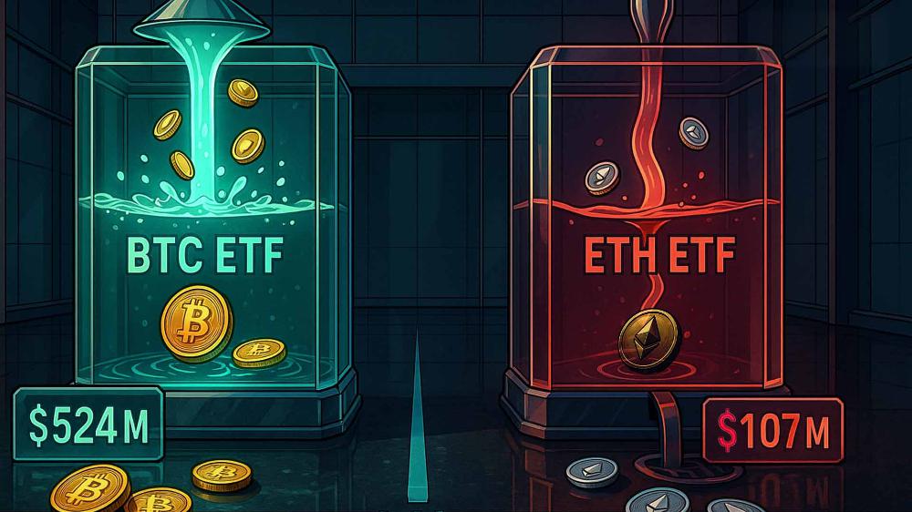 比特币ETF资金流入飙升至5.24亿美元,而以太坊ETF遭遇1.07亿美元撤资