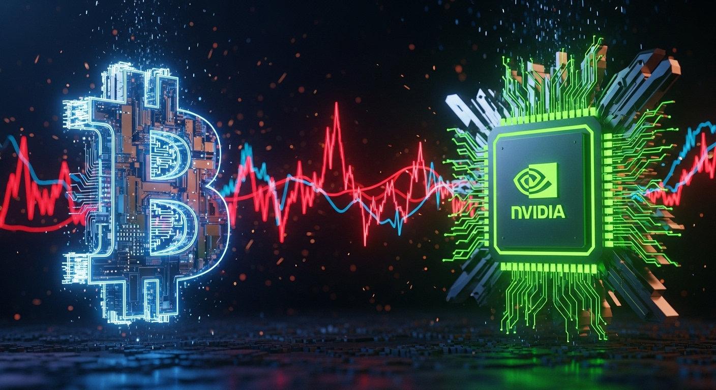 比特币与英伟达相关性骤增引发市场警报 近期比特币(BTC)与英伟达($NVDA)的关联性急剧攀升,引发市场高度警惕。两大资产的同步性持续加深,部分分析师甚至预警可能出现类似互联网泡沫时期的崩盘风险。 同步性达历史峰值 最新数据显示,比特币与英伟达的52周相关系数已飙升至0.75,创下近一年来最高水平。这意味着两者同向波动的概率极高,不仅存在技术层面的联动,更暗藏资产泡沫共振形成的隐忧。 双线创新高催生新概念 值得关注的是,英伟达与比特币近期双双刷新历史纪录。年初至今,英伟达股价暴涨43.6%突破195.30美元(约合271万韩元),比特币同期上涨35.25%触及126,270美元(约1.2025-10-10