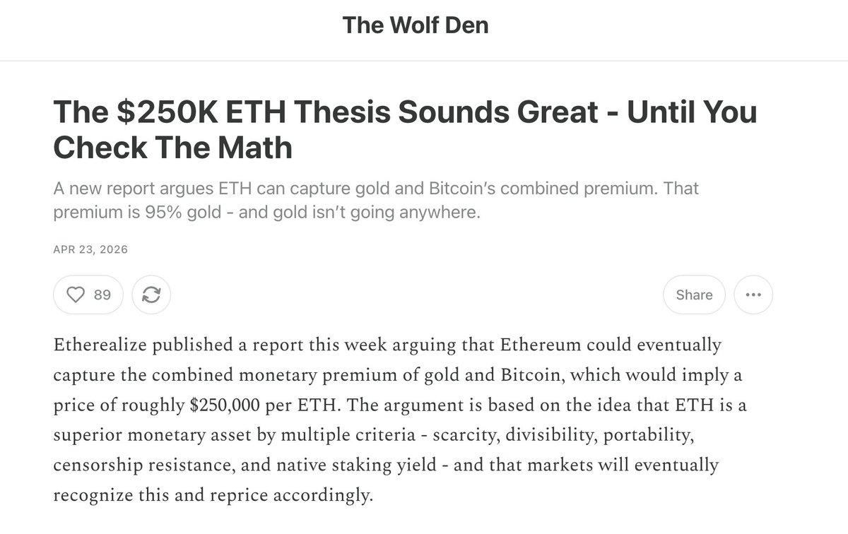 事件起源于科技类视频博主戴夫·琼斯分享的一段经典加密资产经历。“我曾以15美元买入以太坊,在90美元卖出时还自认赚了六倍是一大胜利。”他写道。对许多早期投资者而言,这类退出操作在当时确实像一场胜仗。