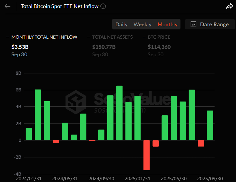 比特币现货ETF 9月吸金35亿美元 环比大幅反弹