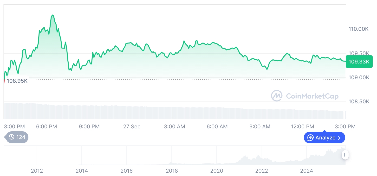《午夜行情快报》加密货币市场震荡整理:比特币10万9344美元,以太坊4016美元