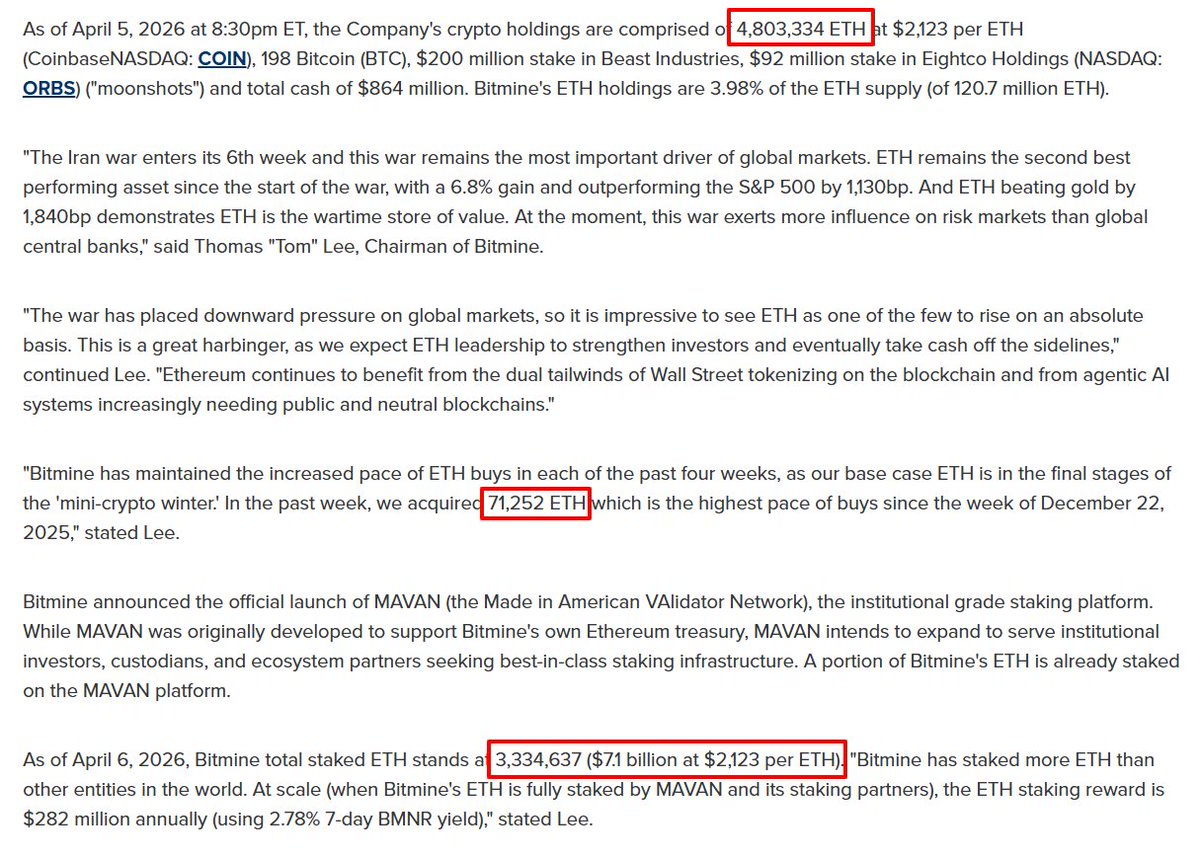 新钱包收到来自BitGo的大额ETH转账。该钱包可能关联Bitmine机构级ETH流动或预示战略调整。