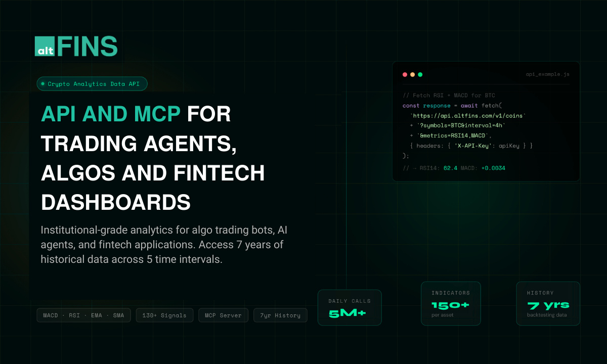 altFINS发布加密分析数据API及MCP 赋能算法交易、AI代理与交易信号(3月11日)