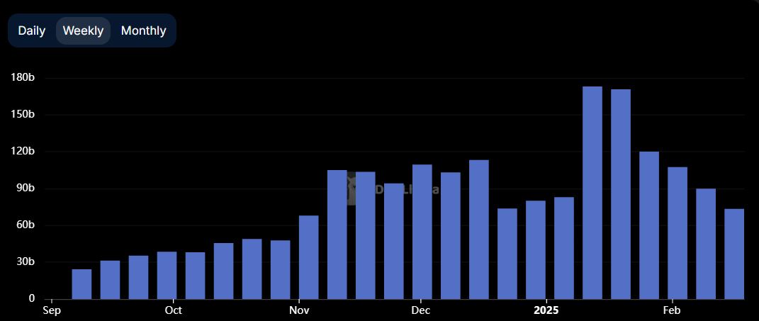 DEX周交易量达720亿美元...较前周下降24%