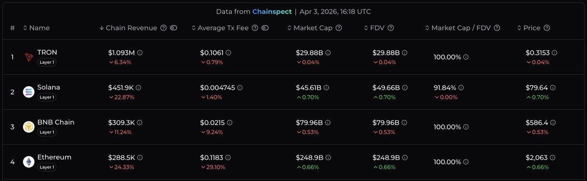 多数主流竞争币均呈现跌势。