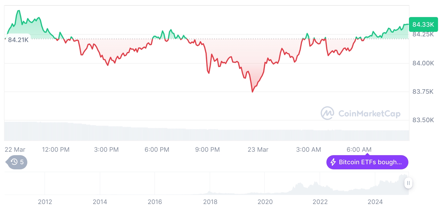 《晚间市场简报:加密货币市场震荡,比特币84,346美元,以太坊2,010美元》