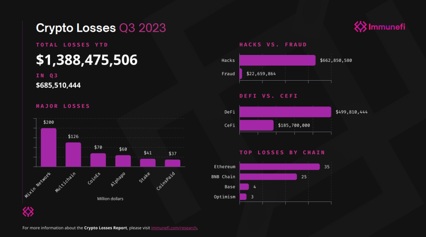 加密货币投资者在短短三个月内因黑客攻击和诈骗损失6.86亿美元:Immunefi报告