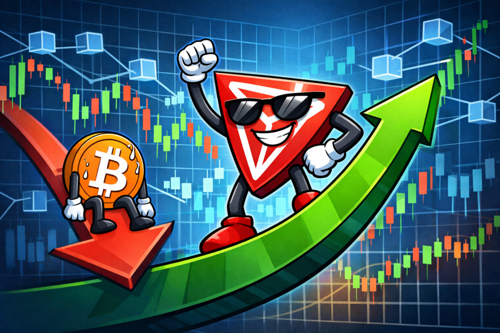 关键要点 在更广泛的加密市场下行期间,Tron的代币TRX展现出韧性,同时该项目扩大了其TRX储备金。 Tron网络活动与稳定币使用量有所增长,且TRX的市场表现优于比特币。Tron创始人孙宇晨强调了公司将积累TRX作为核心储备资产的策略,此举与加强长期数字资产储备的努力方向一致。 市场表现与网络增长 近几个月来,TRX相较于整体市场展现出相对强势。在2024年触及接近0.45美元的高点后,该代币回调至约0.28美元附近,限制了年内跌幅。 同期,比特币录得了更为陡峭的下跌。整个加密货币总市值在1月大幅下滑,而Tron的市值缩水幅度较小。 Tron的网络使用量也在增加,其区块链在1月月活跃地址数 -