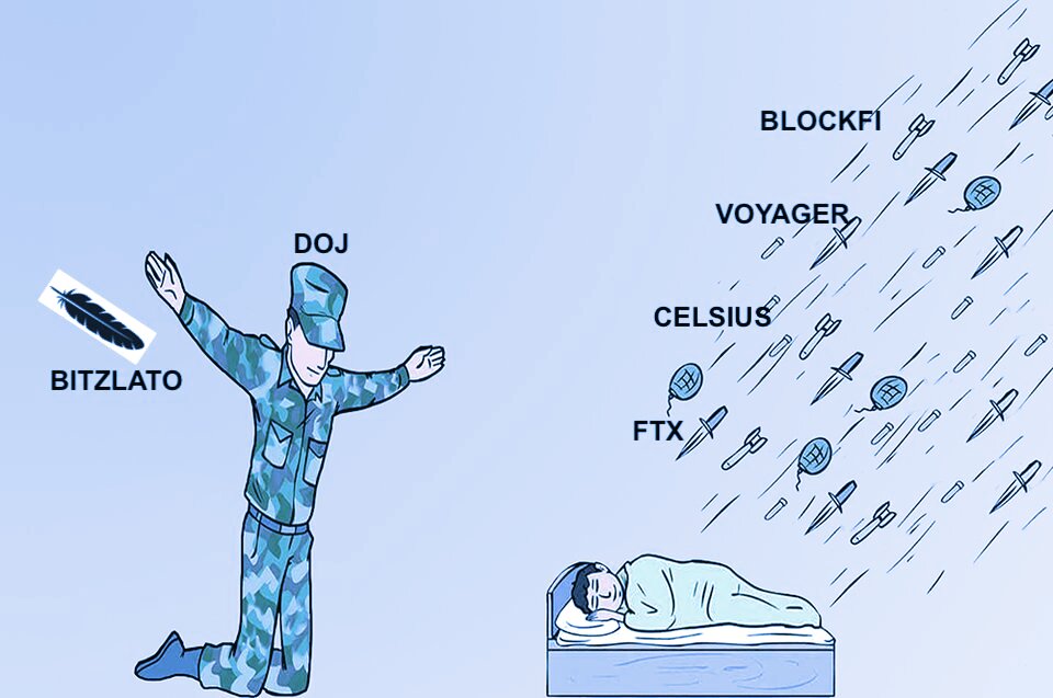 笑话不请自来 周三,美国司法部发布预兆,宣布将在中午举行现场新闻发布会,宣布一项“国际加密货币执法行动”。加密货币推特(Crypto Twitter)陷入恐慌,加密货币价格也随之暴跌。比特币和以太坊在短短几分钟内各自下跌近5%,形成了闪崩。谁是美国司法部的目标?币安是一个热门猜测,而CZ(赵长鹏)发推文“4”更是火上浇油,他在1月2日宣布这是他对即将到来的“FUD(恐惧、不确定、怀疑)、假新闻、攻击等”的新信号。 随后新闻发布会召开。目标不是币安,也不是Celsius、Voyager、Blockfi或其他任何坑害客户的破产加密货币借贷平台。而是一家位于香港、俄罗斯人拥有的加密货币交易所——