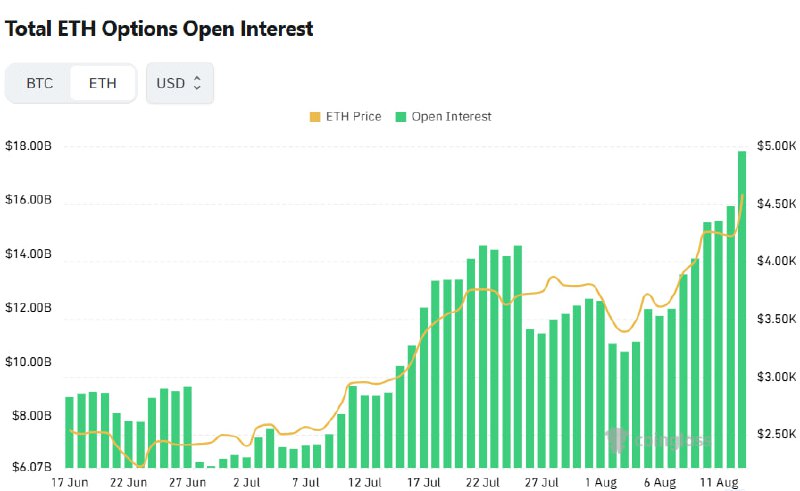 《以太期权日报》以太坊突破4500美元大关…期权市场未平仓合约与交易量双双飙升