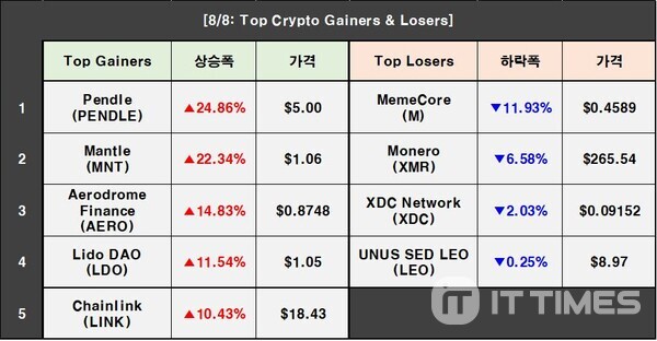 8月8日加密货币行情:比特币涨2.01%,PENDLE飙升24.86%