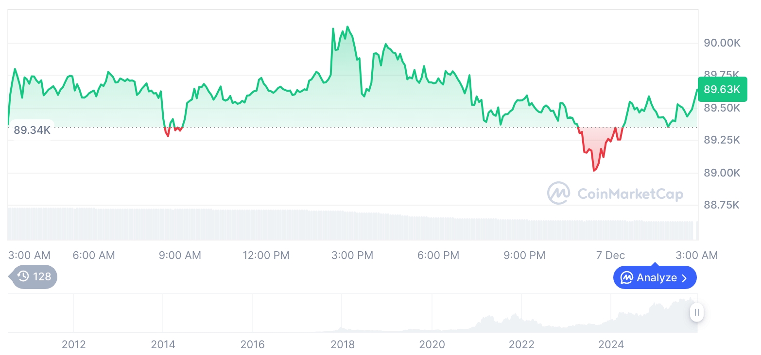 【午后行情速递】加密货币市场震荡分化:比特币报89,657美元,以太坊持稳3,054美元
