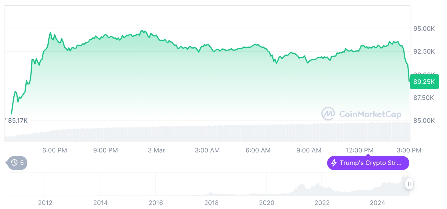 特朗普宣布“储备加密货币”引发市场震荡,比特币突破9万美元后迎来调整