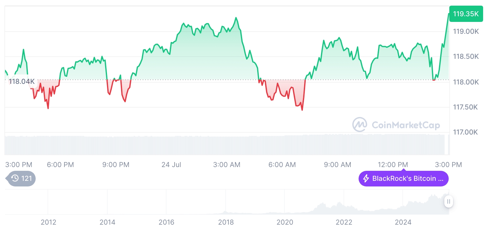 《午夜行情快讯》加密货币市场震荡调整:比特币报11.9万美元 以太坊企稳3735美元