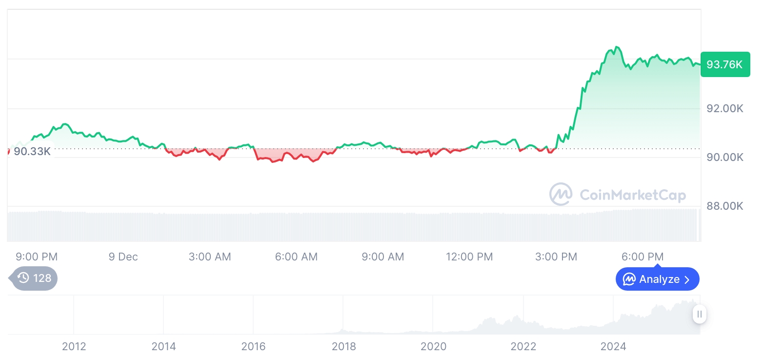 【晨间行情速递】加密货币市场普涨:比特币突破9.38万美元,以太坊站上3360美元