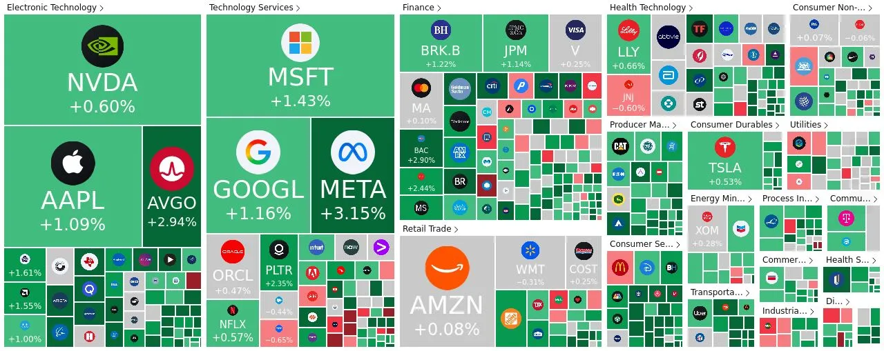 美国股市在半导体股疲软和通胀指标公布前的谨慎情绪中震荡收涨 当地时间13日,美国股市在获利回吐和不确定性加大的背景下呈现分化走势,科技股表现尤为突出。道琼斯工业平均指数(DJIA)上涨483.52点(+1.10%),收于44,458.61点;纳斯达克指数上涨296.50点(+1.39%),收于21,681.90点;标普500指数上涨72.31点(+1.13%),收于6,445.76点。 市场波动加剧 当日市场在通胀数据公布前显现波动性,半导体板块的疲软对纳斯达克指数形成压力,但部分个股受利好因素推动逆势上涨。美国国债收益率涨跌互现:2年期国债收益率下降1.3个基点至4.13%,10年期国债2025-08-13 -