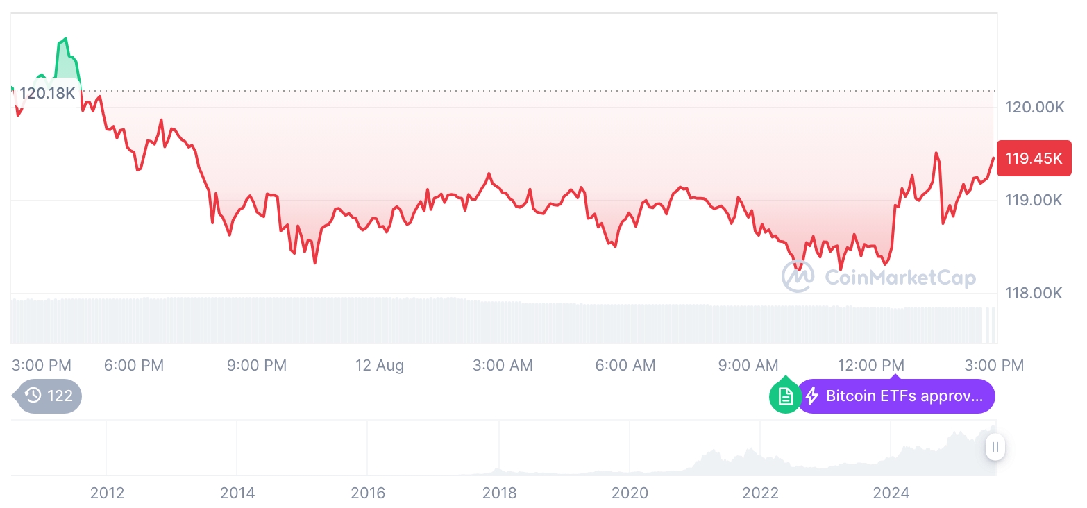 《午夜行情快报》加密货币市场震荡整理:比特币报11万9453美元,以太坊报4423美元