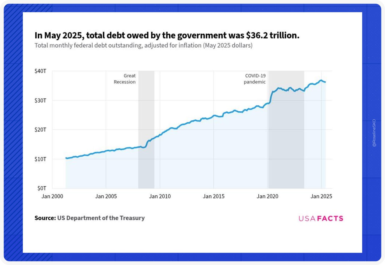 令人震惊的数字 美国国家债务近日突破36.2万亿美元大关,所有人都在追问同一个问题:我们究竟在向谁偿还这笔巨款?答案远比想象中复杂。 债务构成:资金流向解析 国内债权人(意想不到的债主) 社会保障信托基金:2.7万亿美元 联邦储备系统:5.2万亿美元 共同基金与养老基金:超4万亿美元 购买国债的美国普通民众 国外债权人(传统持有方) 日本:1.1万亿美元 中国:8590亿美元 英国:7100亿美元 卢森堡:3670亿美元 爱尔兰:3190亿美元 多数人没有意识到:约75%的美国债务实际上由美国国内机构和个人持有。这本质上是通过社会保障和医疗保险计划向未来的自己借钱。 比特币解决方2025-07-12