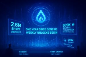 Hyperliquid周年纪念与首次解锁:新分发时代开启 自Hyperliquid创世事件及其原生代币HYPE于2024年11月29日推出至今,正好过去一年。该项目迎来首个周年纪念的同时,也正式启动了社区期待数月的周度解锁计划。 这一周年节点不仅具有象征意义,更标志着新分发时代的开端。这将测试生态系统的成熟度,同时让市场更清晰地了解Hyperliquid团队如何管理供应、激励与信任体系。 首次解锁已经启动。相关数据清晰地展现了Hyperliquid未来的运作思路。 去VC化启动的里程碑 去年Hyperliquid创世事件在整个加密领域引发轰动。项目通过向近9.4万名早期用户空投3.1亿枚HY2025-11-30