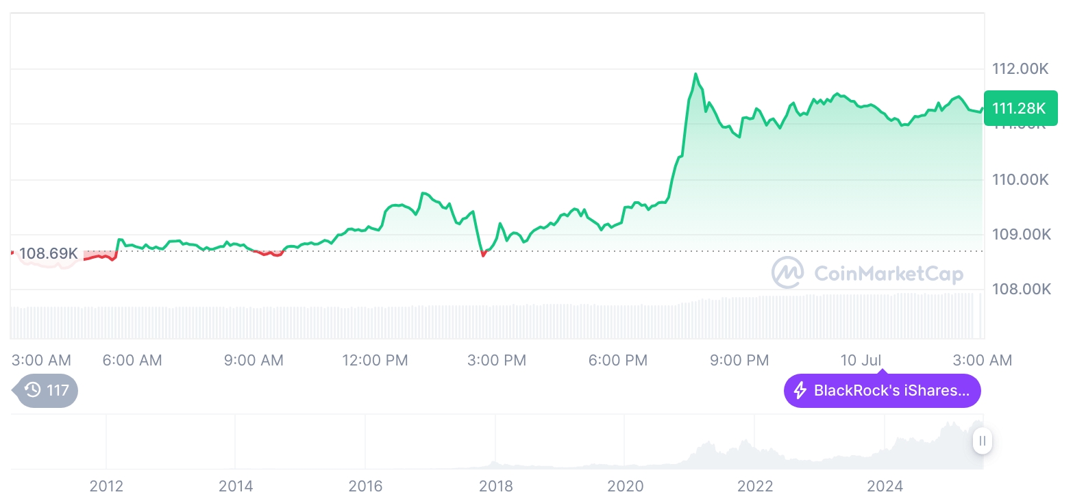 比特币($BTC)突破历史新高112000美元,特朗普降息言论助推涨势