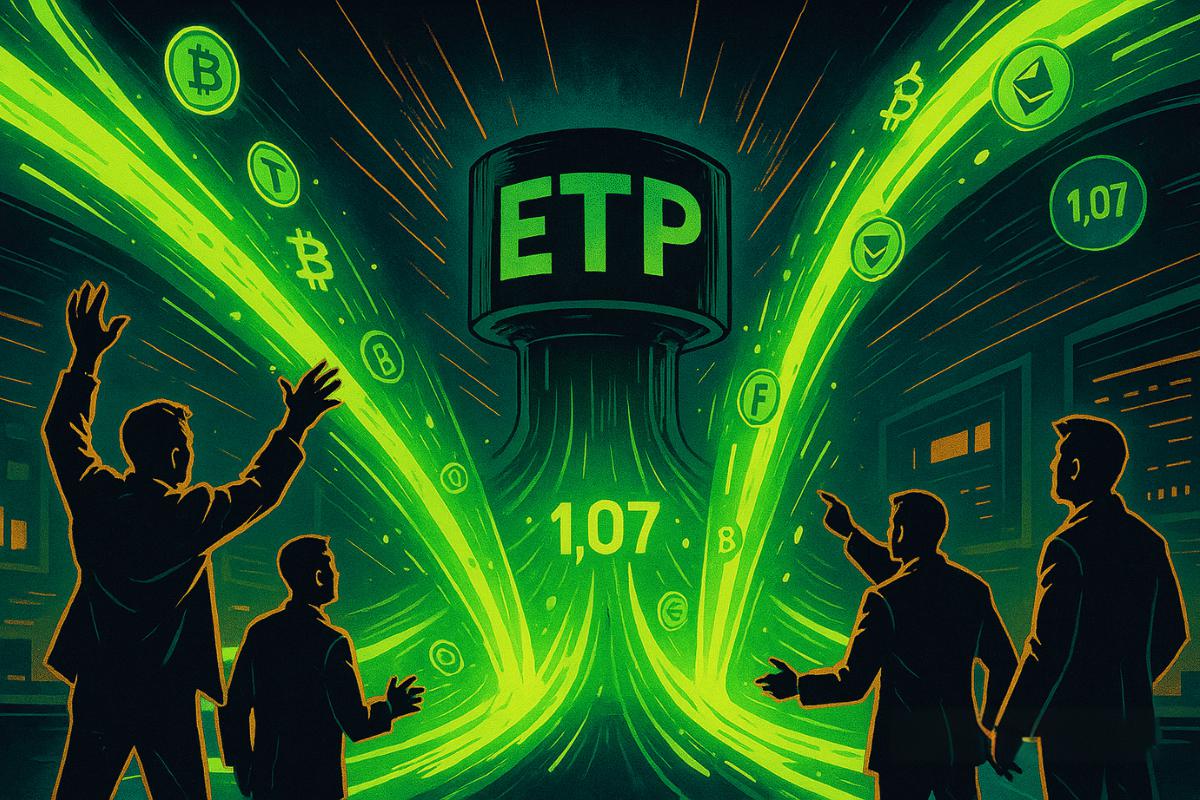加密货币投资产品在经历大规模撤资后强势回归经过一个月的大规模资金撤离后,加密货币投资产品迎来惊人反弹。在短短一周内,加密货币交易所交易产品实现了10.7亿美元的资金流入,打破了连续四周累计流出55亿美元的颓势。这一转变在高度不确定的货币政策背景下标志着意外转折点,市场正在密切关注美联储的政策信号。核心要点· 在经历四周累计55亿美元流出后,加密货币ETP单周实现10.7亿美元资金回流· 趋势逆转与市场重燃的乐观情绪相关,特别是对美国降息预期的升温· 比特币以4.64亿美元周流入额保持领先,以太坊以3.09亿美元紧随其后,而XRP则以创纪录的2.89亿美元令人意外· 尽管适逢感恩节交易清淡期,美 -