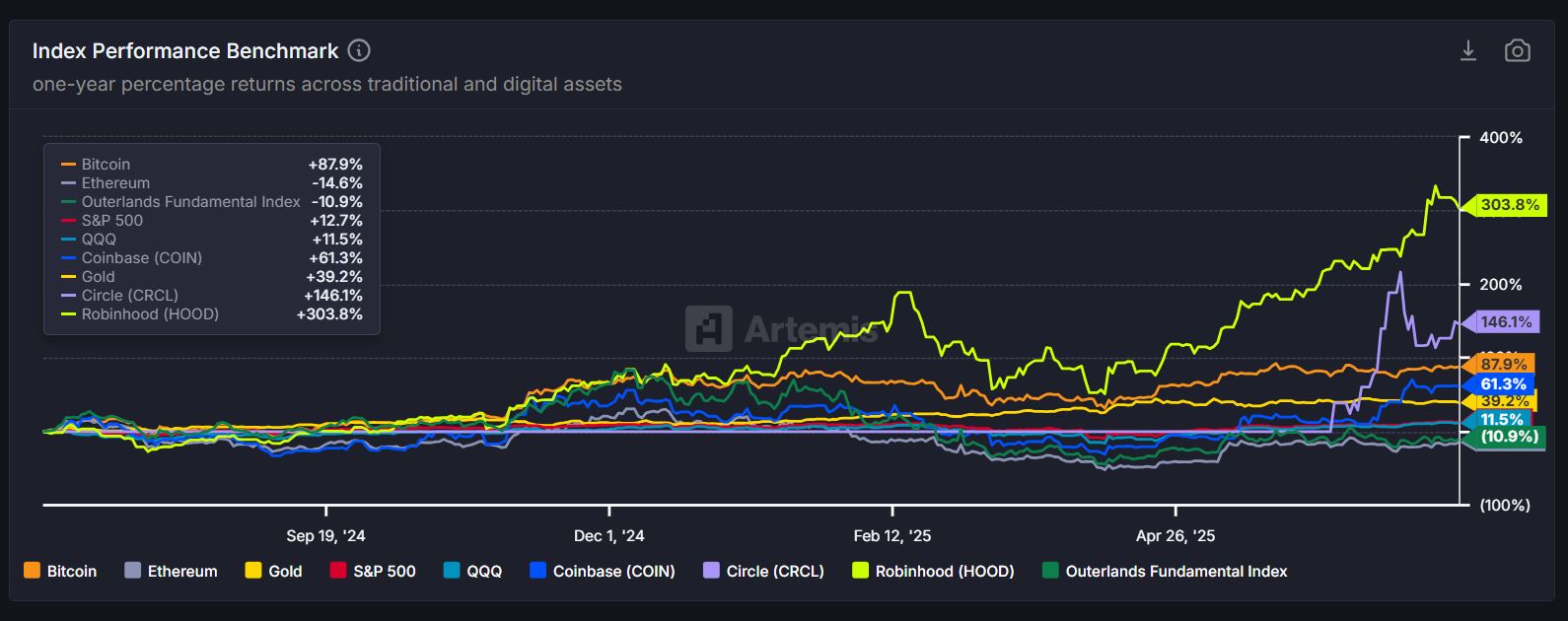 《指数报告》比特币年收益率达87%,Circle 146%、Robinhood 303%