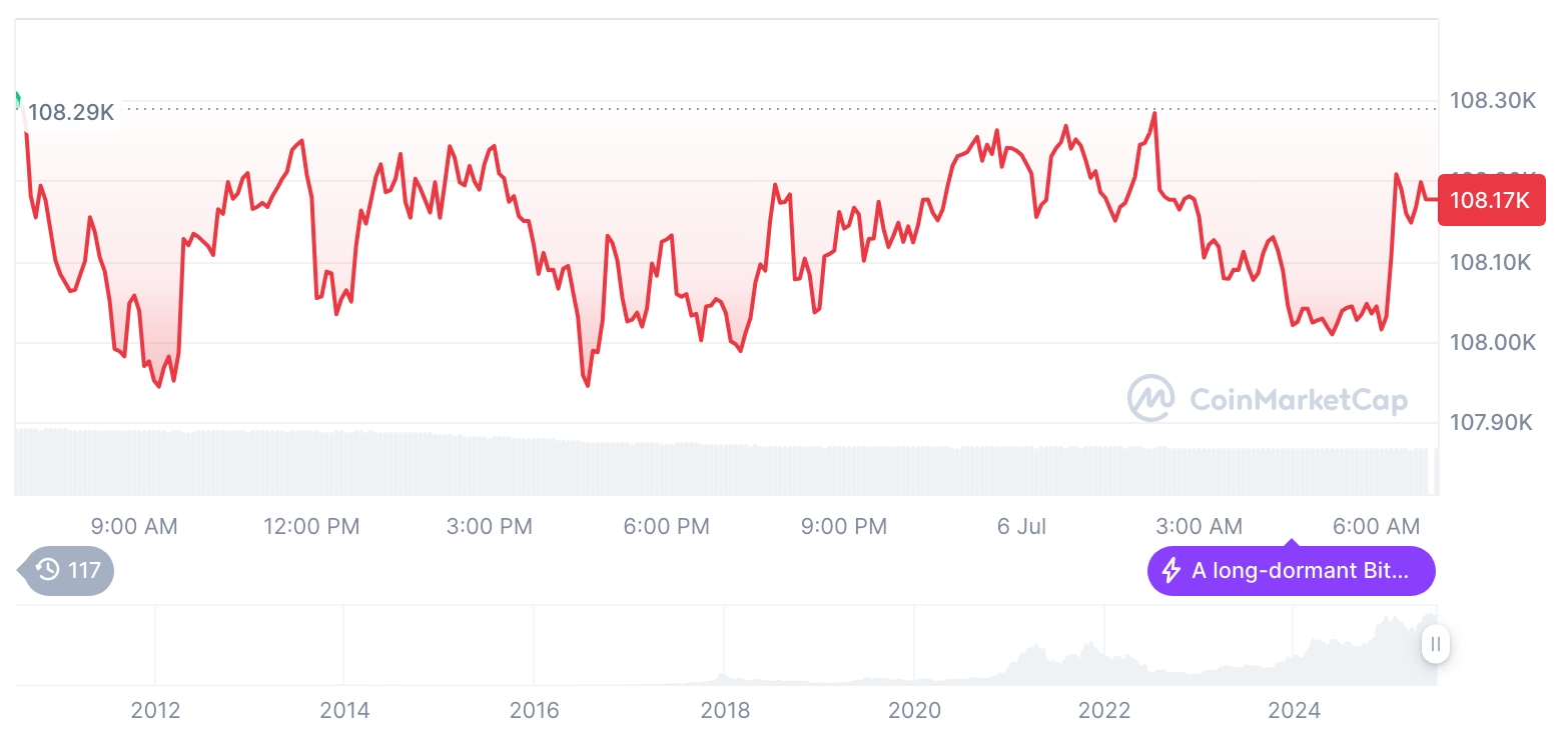 《晚间行情简报》加密货币市场震荡整理:比特币报108,171美元,以太坊报2,522美元