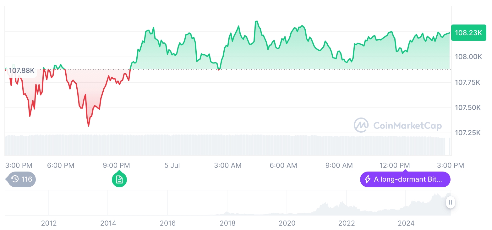 【午夜行情速递】加密货币市场震荡调整:比特币报108,220美元,以太坊报2,518美元