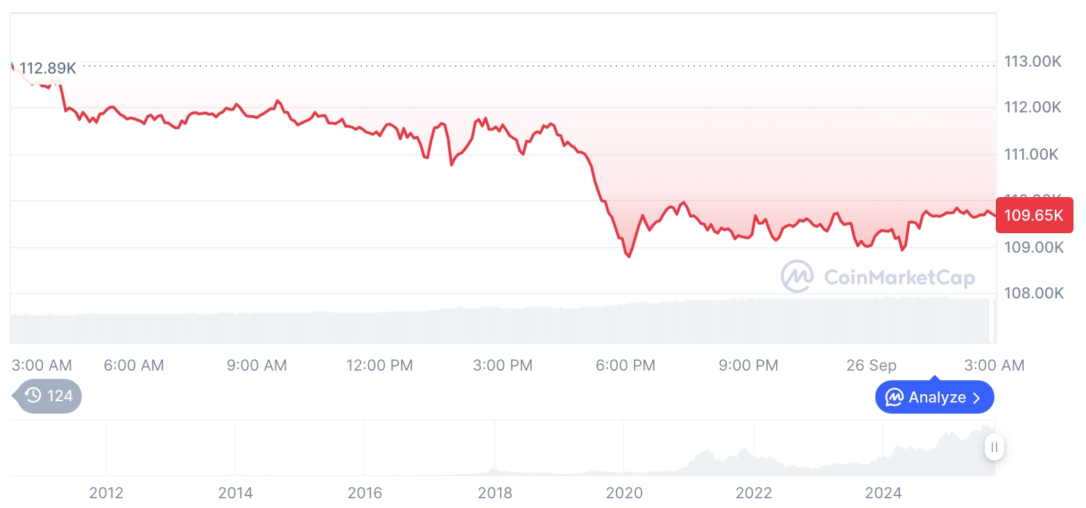《CoinRank加密周报(9/26)|比特币短线失守10.9万美元》