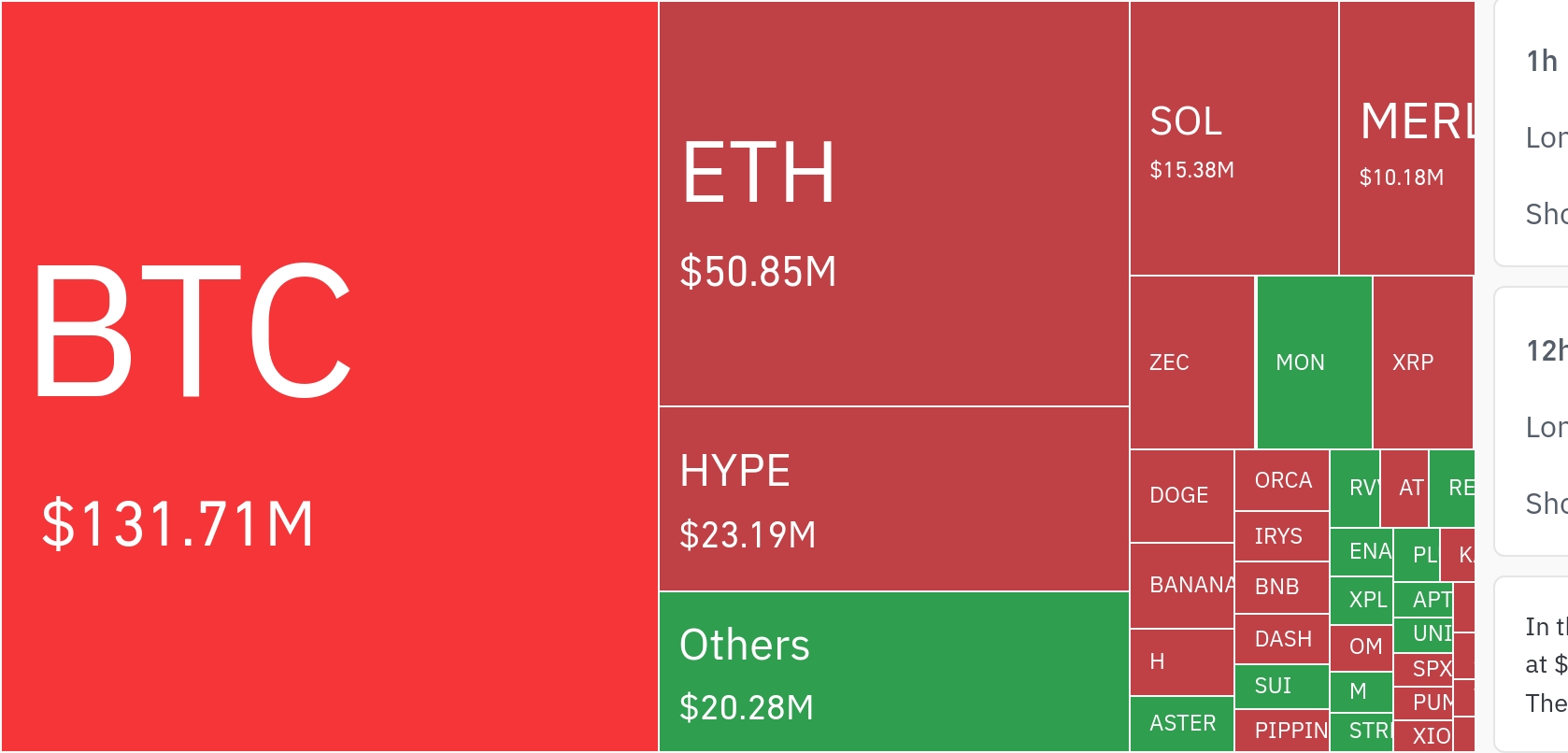 过去24小时加密货币市场清算规模达2.5亿美元 最新数据显示,过去24小时内加密货币市场约有2.5亿美元(约合3300亿韩元)杠杆头寸被强制平仓。多数清算头寸为多头仓位,主要源于市场下行压力。 主要交易所清算分布 币安在最近4小时内清算规模最大,总计810万美元(占总量45.21%),其中多头清算占比50.7%。 Bybit位列第二,清算金额达375万美元(20.96%),空头清算比例高达59.02%。 OKX平台清算规模约336万美元(18.73%),多头仓位占比53.93%。 值得关注的是,Hyperliquid平台多头清算比例高达94.09%,而BitMEX平台出现了100%的多头清算 -