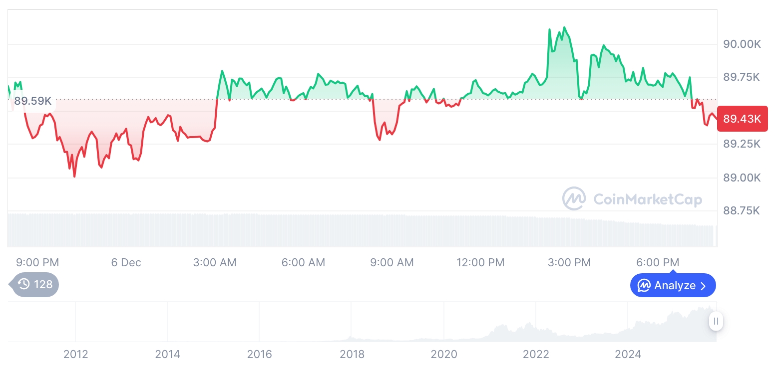 【晨间行情速递】加密货币市场震荡分化:比特币报89,434美元,以太坊持稳3,031美元