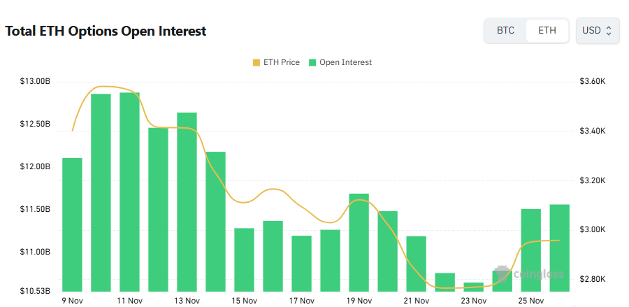 [以太坊期权日报] 未平仓合约115亿美元持平...看涨押注持续聚焦6000美元看涨期权