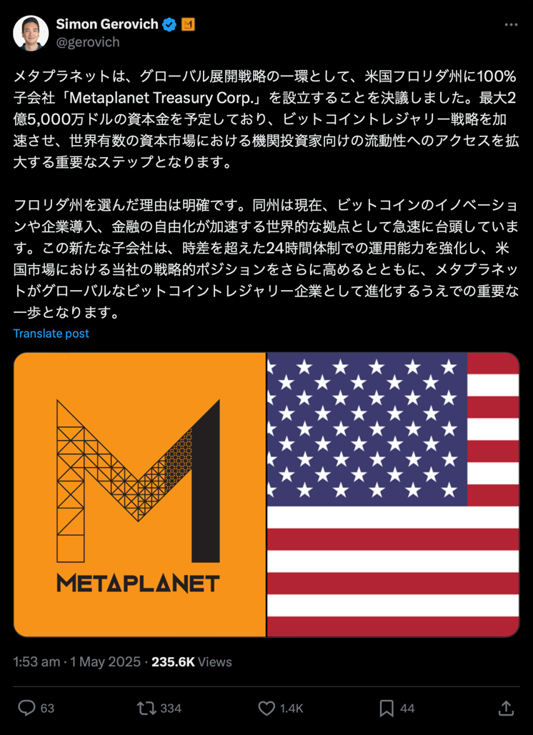 Metaplanet举债1.3亿美元增持比特币