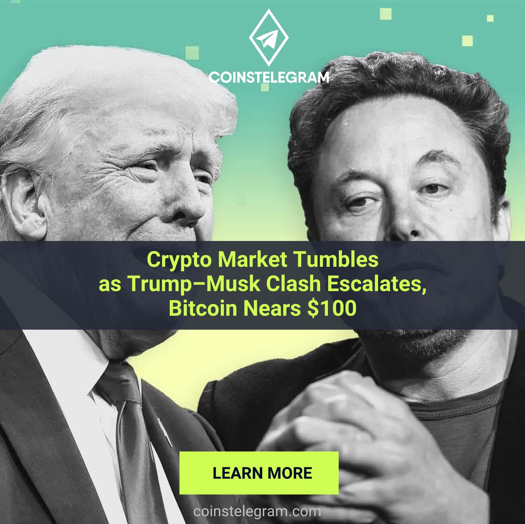 特朗普与马斯克争端升级致加密货币市场暴跌,比特币逼近10万美元大关