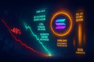 Solana再度承压 当前该资产较9月17日的局部高点已下跌49%,创下年内最剧烈的回撤幅度之一。链上市场情绪显得摇摆不定,价格波动持续高企,众多交易者紧盯着每一根K线变化。 价格波动背后的深层变革 在纷杂的价格波动之下,一场不同于以往抛售的变革正在上演。本次Solana链上活动不降反增,新钱包创建速度加快,ETF产品更是吸纳了数亿美元的新增资金。更关键的是,项目开发者刚刚提出了代币经济模型修改方案SIMD-0411,这项变革可能以远超预期的速度重塑SOL代币的长期供应曲线。 表面看似普通的回调,正在演变为Solana数月来最具实质性的基本面转折。 价格下跌时的反常现象 最新链上数据显示2025-11-23