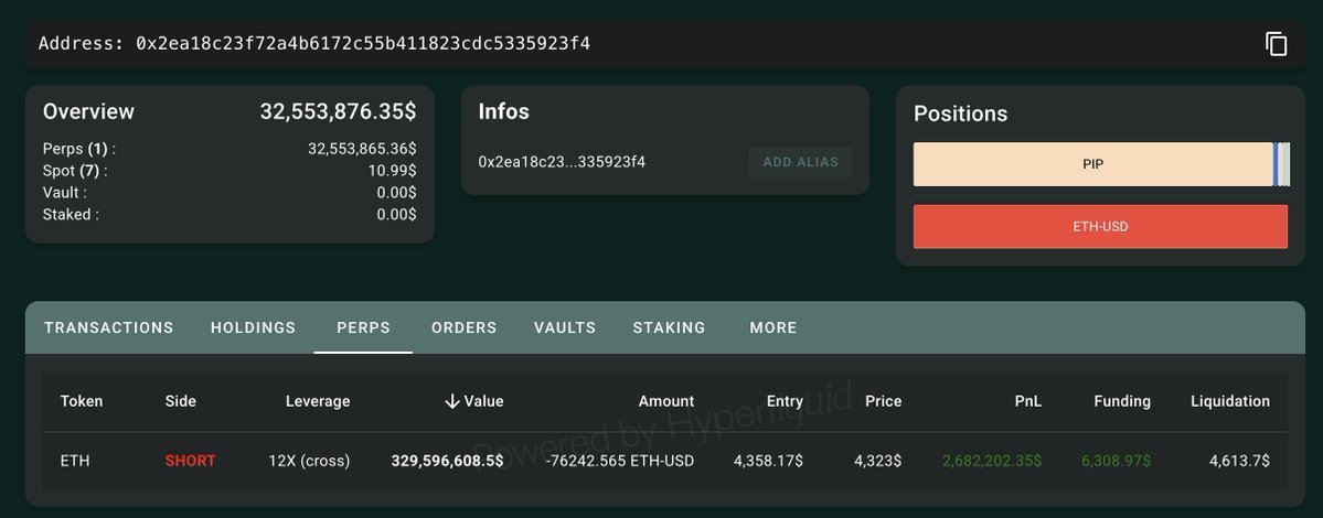 81,203枚$ETH(3.531亿美元)的12倍空头