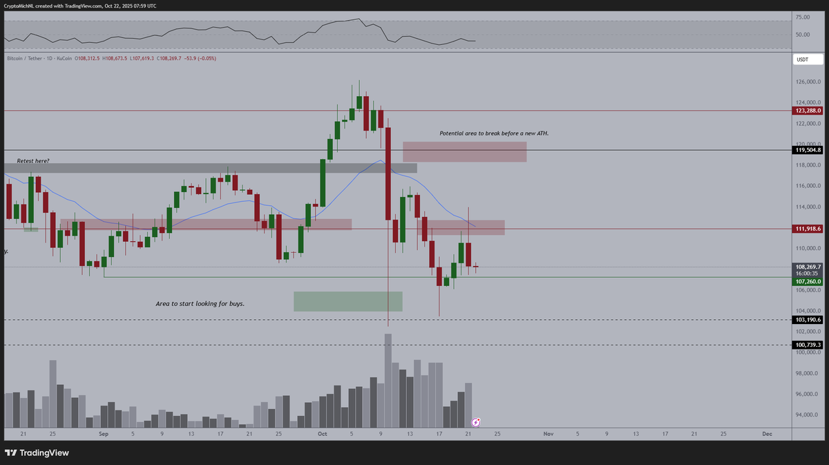 我一直在提112K美元这个区域。如果它不突破,那么目前就不会有ETH的历史新高和山寨币的狂欢。但我确实相信我们正处于突破的边缘,因为我们在第一次测试中已经吸收了该区域的所有流动性。这只是时间问题。如果比特币跌破106K美元,那么它也不会是一个糟糕的积累机会。