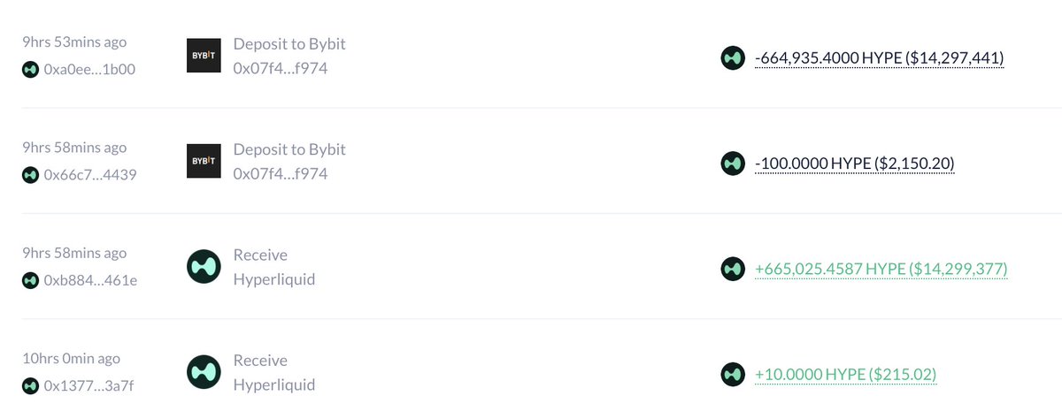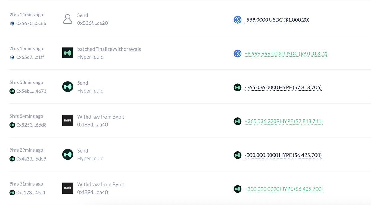 时隔五天,7 小时前他又从 #Bybit 和 #OKX 提出 3365.5 ETH(约 1020 万美元);即 12.05 - 12.122 期间他以均价 $3167 累计提出 30210 ETH,总价值 9567 万美元