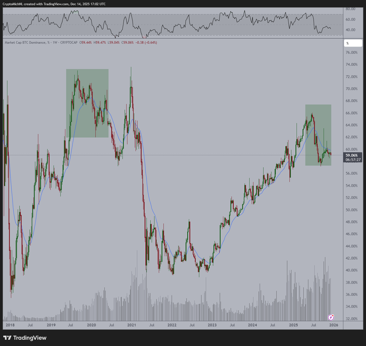 许多 #Altcoins 和趋势目前正在与每日20日均线作斗争。因此,下周将是决定性的,伴随着所有正在发生的新闻事件。如果Web 3资产能够突破20日均线,那将意味着自9月以来的首次上涨趋势可能开始。这完全符合2026年将是看涨的论点,并且是我们为几乎所有人抹去整个4年周期的一年。