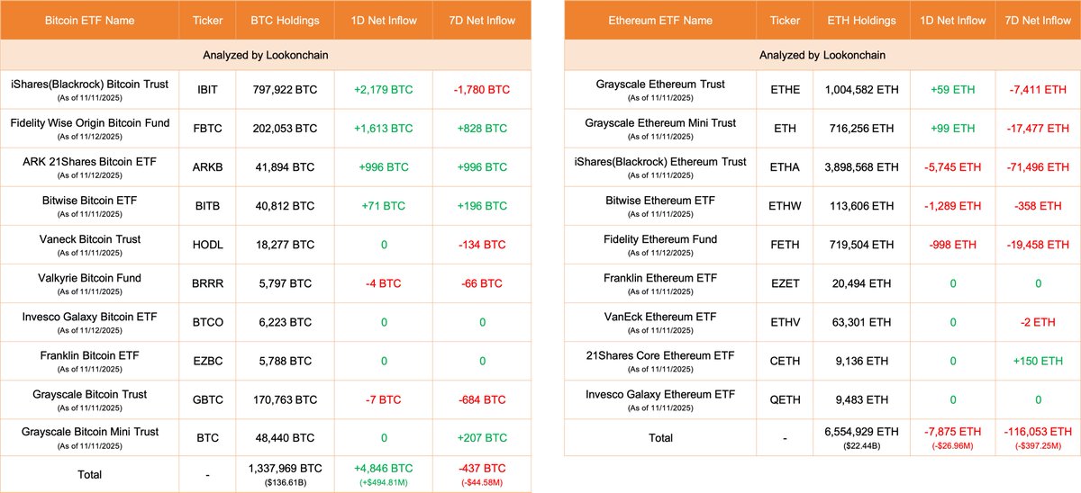 净流入:+4,846 $BTC(+$494.81M)🟢