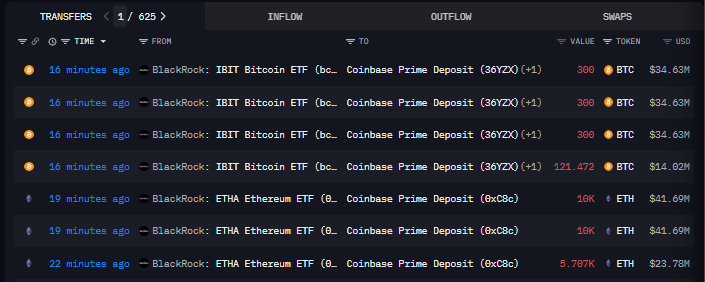🚨BLACKROCK 抛售比特币,买入以太坊🚨 #BlackRock 向 Coinbase Prime 存入了 272.4 #BTC ($28.3M),几小时后又提取了 12,098 #ETH ($45.4M)。
