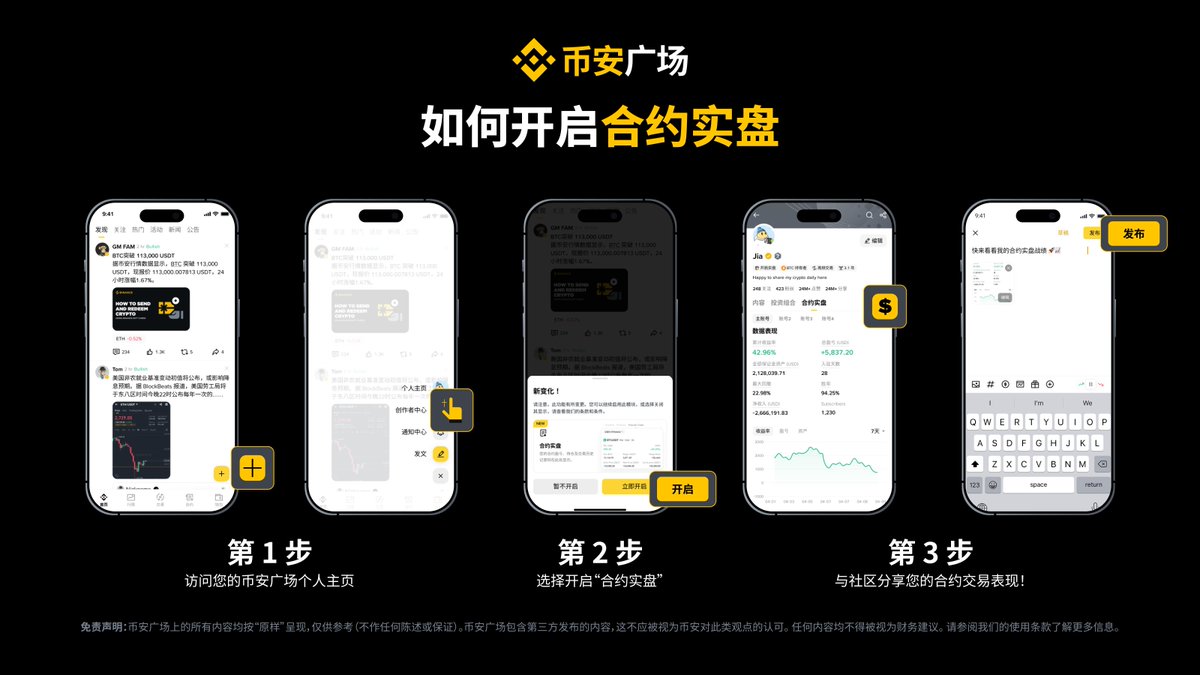 1️⃣开启合约实盘,带话题标签 #币安合约实盘 分享您的实盘成绩截图,即可瓜分2万USDT代币券奖励!