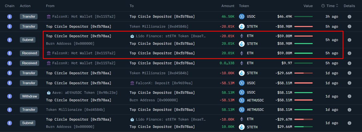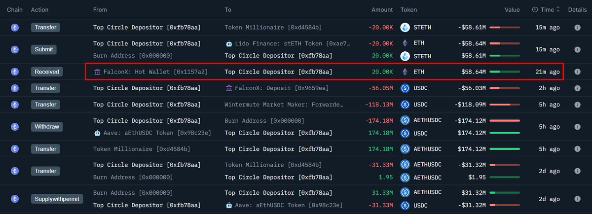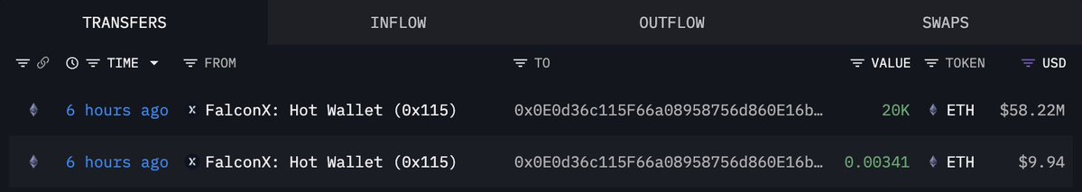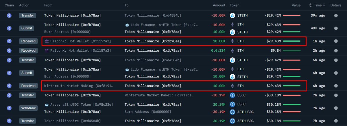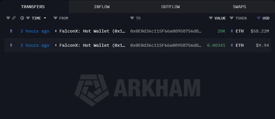 2万枚以太坊转入未知钱包,FalconX转出5645万美元巨资