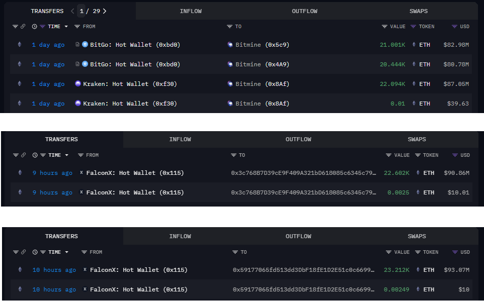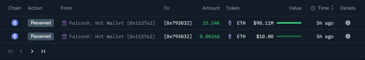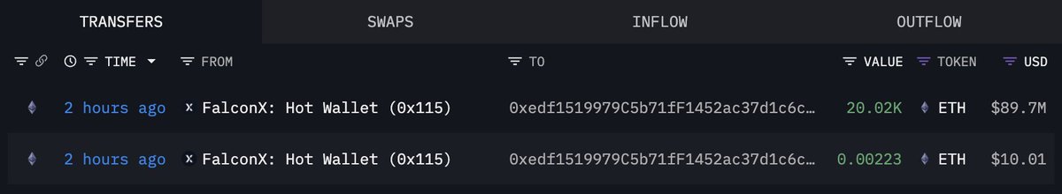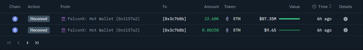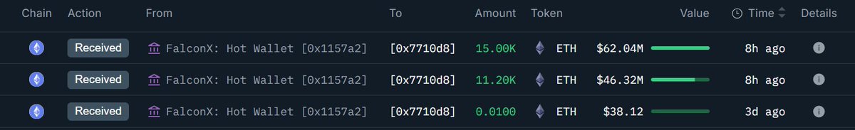 过去8小时内,8个新创建的钱包从#FalconX和#GalaxyDigital收到了35,948 $ETH(1.64亿美元)。