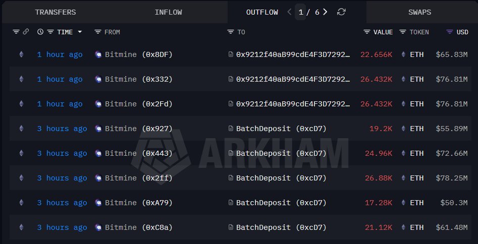 Bitmine收购2万枚以太坊并增持18.5万枚进行质押